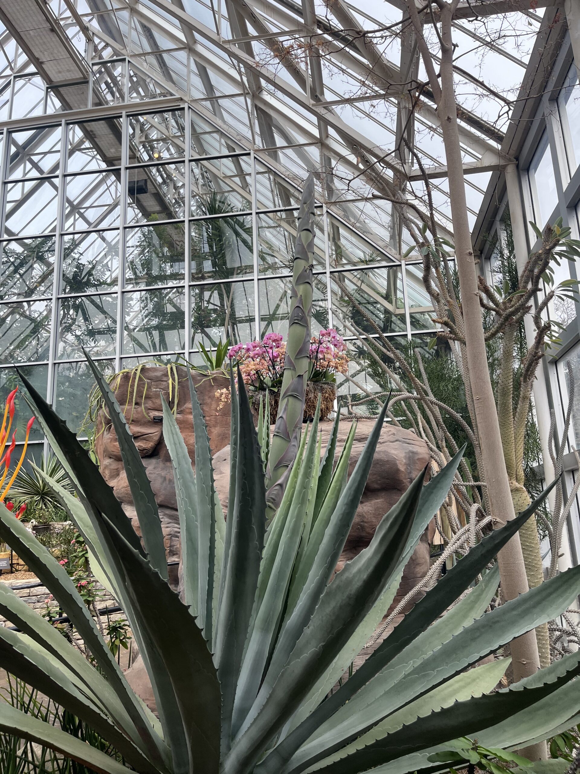An extraordinary bloom is unfolding at the Conservatory! In early March 2026, our Agave americana—commonly known as the Century Plant—began its rare flowering process in the Desert Biome.