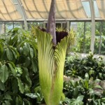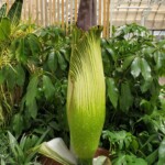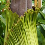 When fully opened it will release a stench similar to rotting flesh, which attracts its pollinators of flies and beetles. This bloom will be open only for one to two days before the plant collapses into a dormant state. It will be several years before the titan arum flowers again.