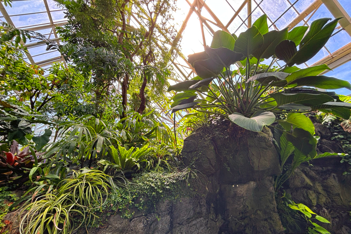 Experience this diverse environment at various elevations as you make your way along the winding path, viewing flora native only to the volcanically formed Pacific islands. Spend some time examining the unusual ferns that genetically date back nearly 350 million years, and make sure to look up to find the breadfruit and banana tree. At the lower level of the biome, take a break at the edge of the Koi pond and visit with the curious fish.