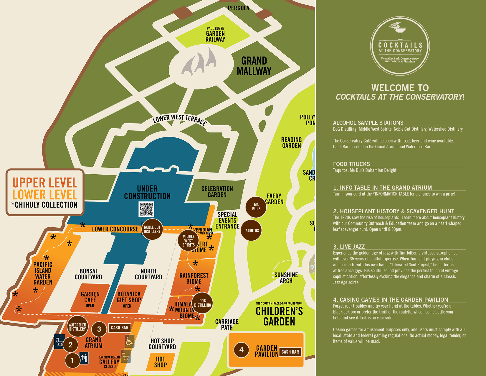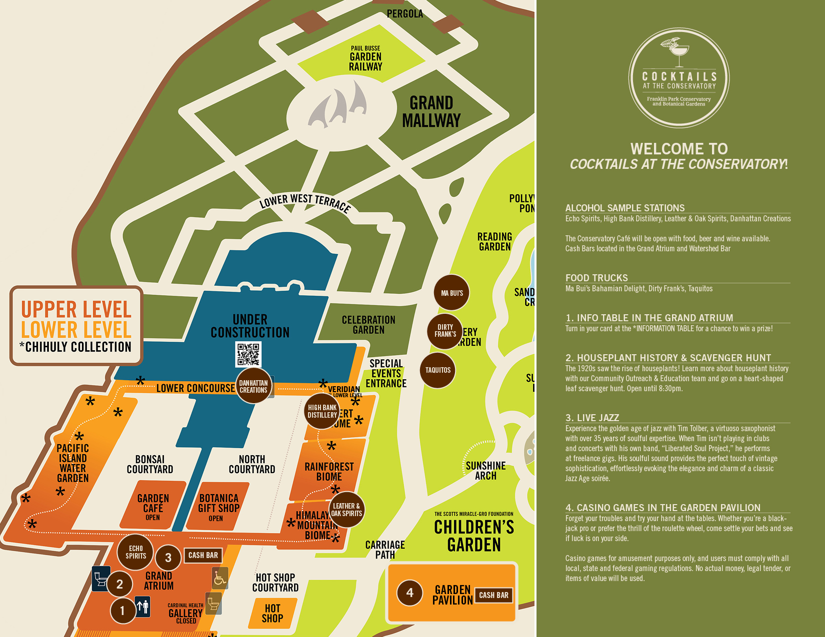 Reservations also include alcohol samples from each alcohol vendor. Additional drinks can only be purchased from the designated cash bars. Food may be purchased from local food trucks on site.