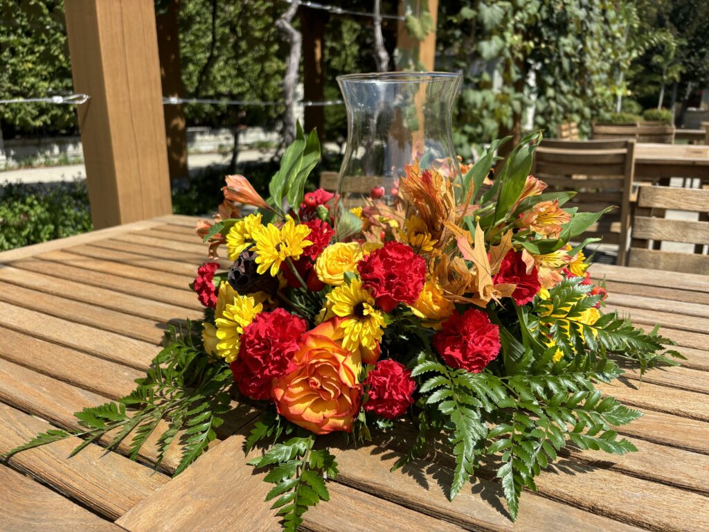 Fall brings to mind shades of red, yellow, and orange. In this floral design class, we will create the perfect floral centerpiece for your Thanksgiving Table using a combination of fresh and dried florals, and silk botanical decor. Create a balanced design that will rest around a glass candle vase, to wow all your guests at holiday dinner.