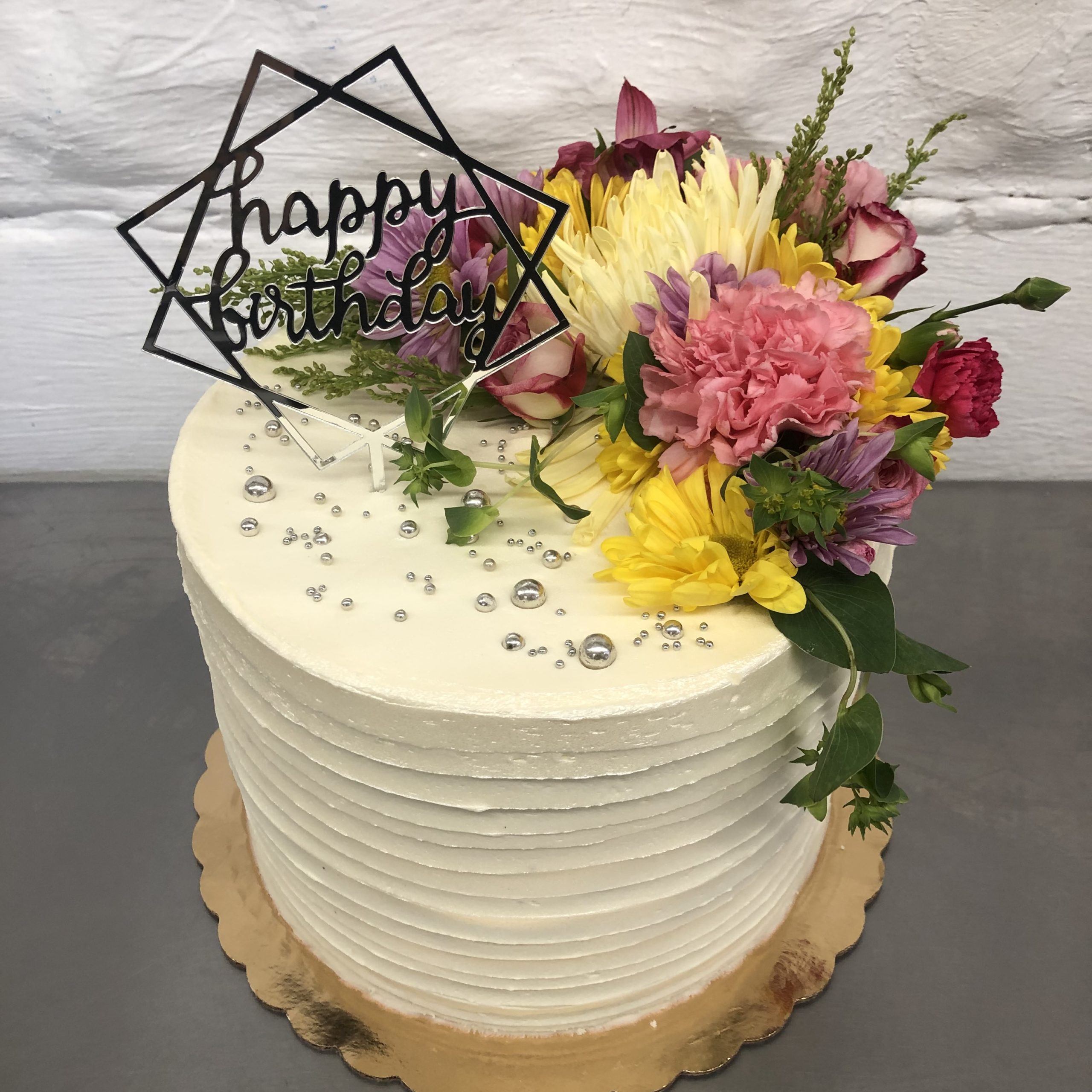 This class will teach you how to assemble a buttercream cake decorated with fresh flowers. Each student will receive two layers of cake, buttercream, and detailed instructions on how to trim, fill, stack, and ice your cake. While your cake chills in the fridge, enjoy a glass of wine while building flower clusters to decorate your cake. A box will be provided to transport your masterpiece home!