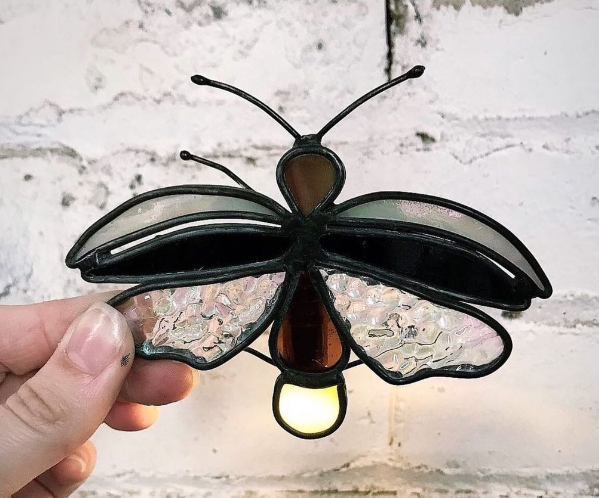 Create your own lightning bug hanging stained glass piece that actually lights up! Kara of Good Dea Glass Co will guide you through the basics of the stained glass making process, and you’ll complete your own lightning bug art piece. In this beginner-friendly class you’ll learn to cut, grind, and solder sheet glass using the copper foil method.