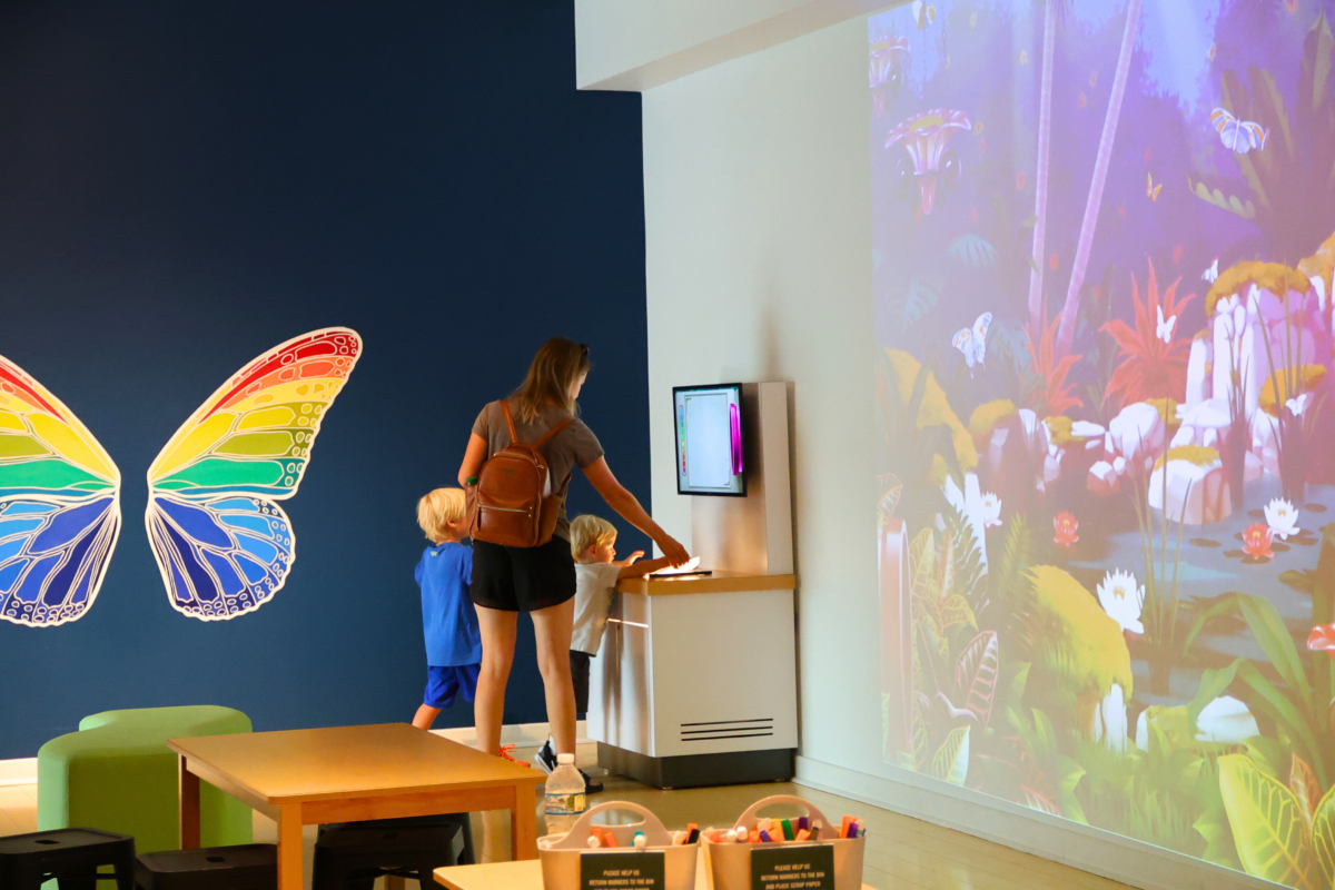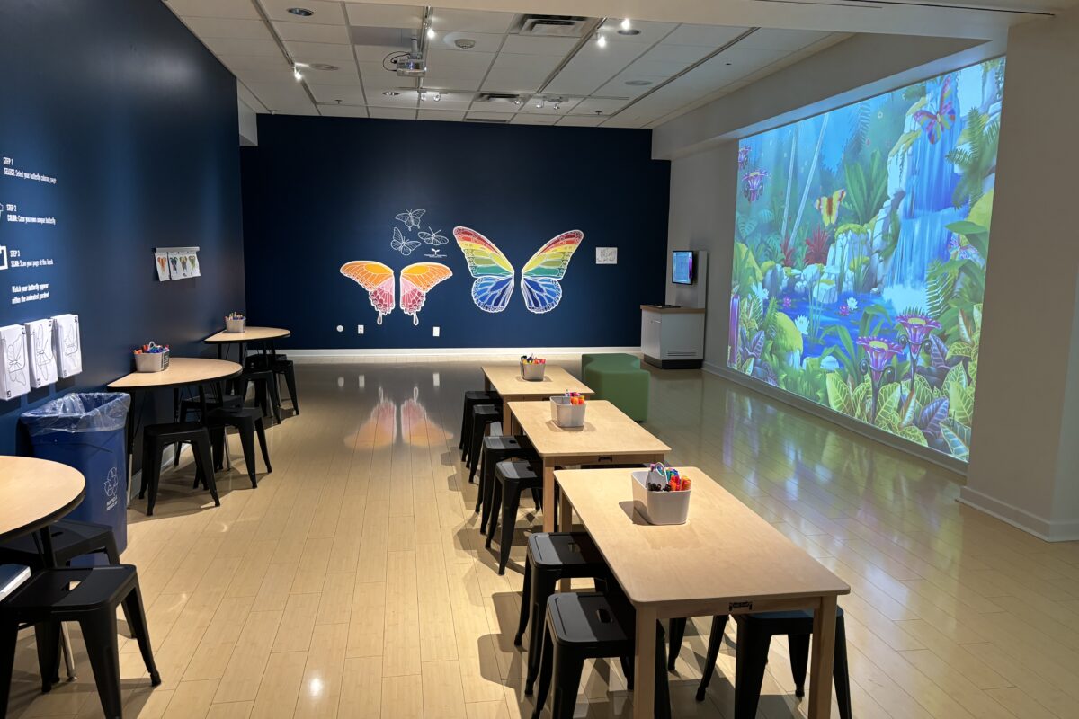 The Cardinal Health Gallery will experience its own metamorphosis into an immersive butterfly coloring experience which invites guests to color their own butterfly and watch the butterfly creation come alive in the illustrated Pacific Island Water Garden.