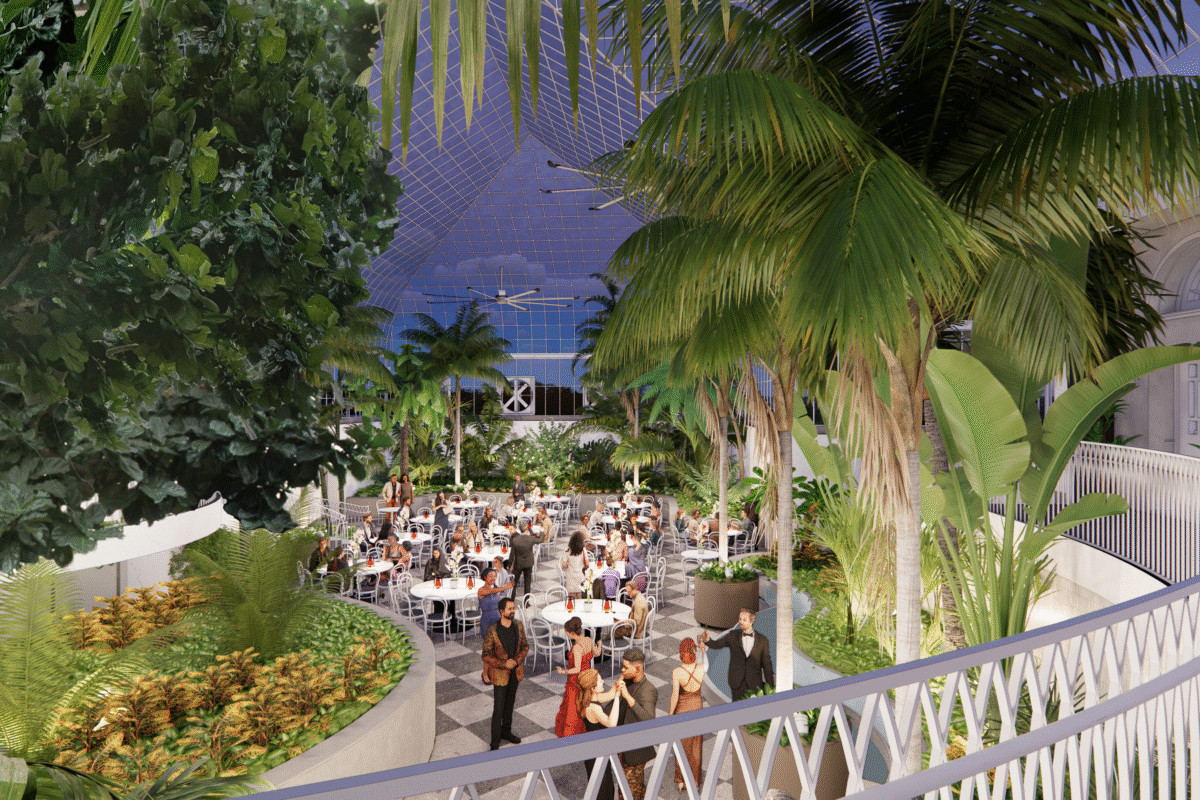 Coming fall of 2027 – The reimagined John F. Wolfe Palm House is an iconic indoor garden for elevated events. Soaring glass ceilings, lush palms, and thoughtfully designed plantings create a setting that feels both timeless and immersive.